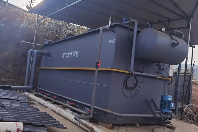 溶气气浮机采用新型高效的溶气设备——微气泡发生器,代替传统的引气设备向水中溶气,并在气浮区域内安装若干斜管组,包括箱体、刮渣机、螺旋出料机共同组成一个完整气浮净水装置。理论上讲,气浮的处理效果与停留时间是没有直接联系的,而只与气浮面积有关,如果将水深H的气浮区减少为水深H/10,那么气浮距离和停留时间都将缩小10倍,这就是著名的“浅池理论”。气浮区加入斜管的目的是增大气浮面积,大大降低了雷诺系数,使气浮避免在紊流状态下进行,制造良好的层流状态,达到浅层气浮的效果。
